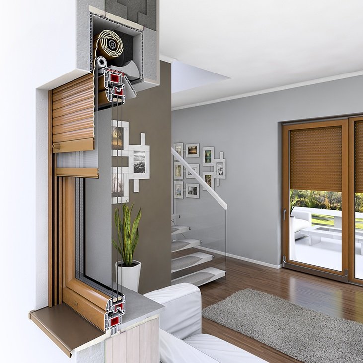 Der optimale Aufbau von Rollläden und die ausgeklügelten Details sind Ausdruck eines neuartigen Designs. Die größten Vorteile des Systems von DRUTEX liegen in der Anwendung von Lösungen, die bei anderen führenden Rollladenherstellern nicht zu finden sind. Die modernen PVC-Rollläden wurden etwa mit einer sogenannten warmen Verstärkungskonsole aus Kunststoff ausgestattet, die im Vergleich zu den handelsüblichen Stahlkonsolen die Wärmeeffizienz erheblich verbessert und zugleich eine optimale Steifheit der Konstruktion ermöglicht.